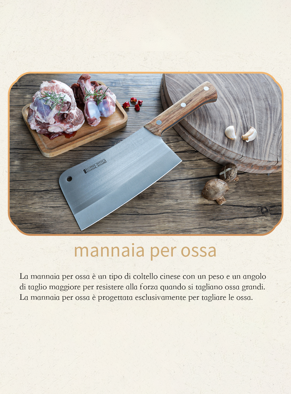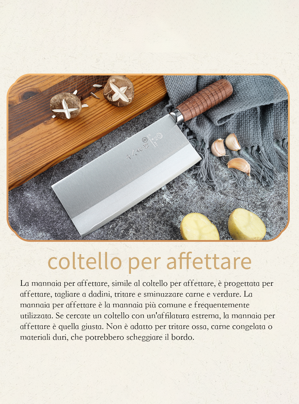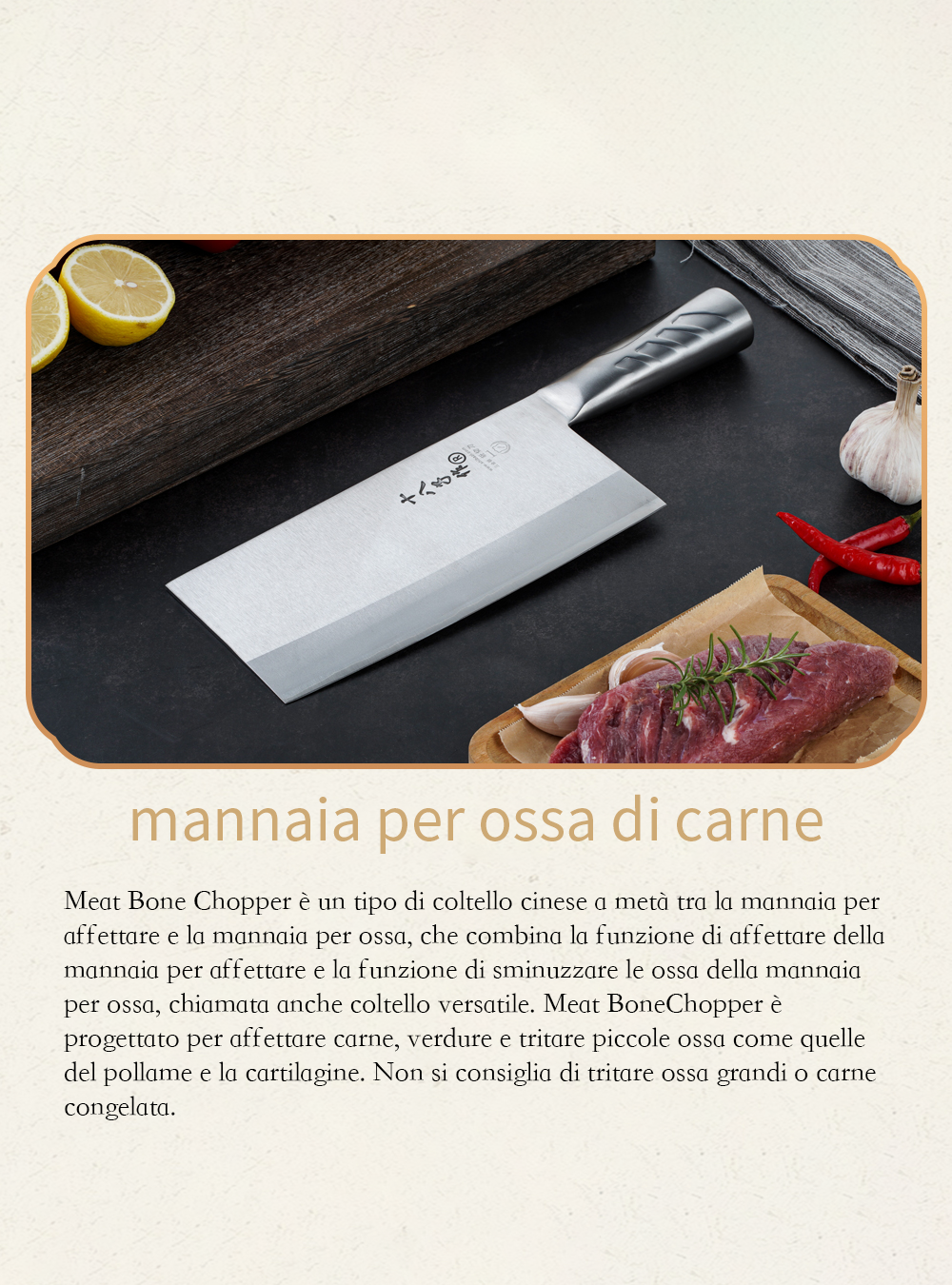 Coltello da chef cinese SHI BA ZI ZUO Coltello da mannaia da 8 pollici per affettare carne, verdure e tritare piccole ossa