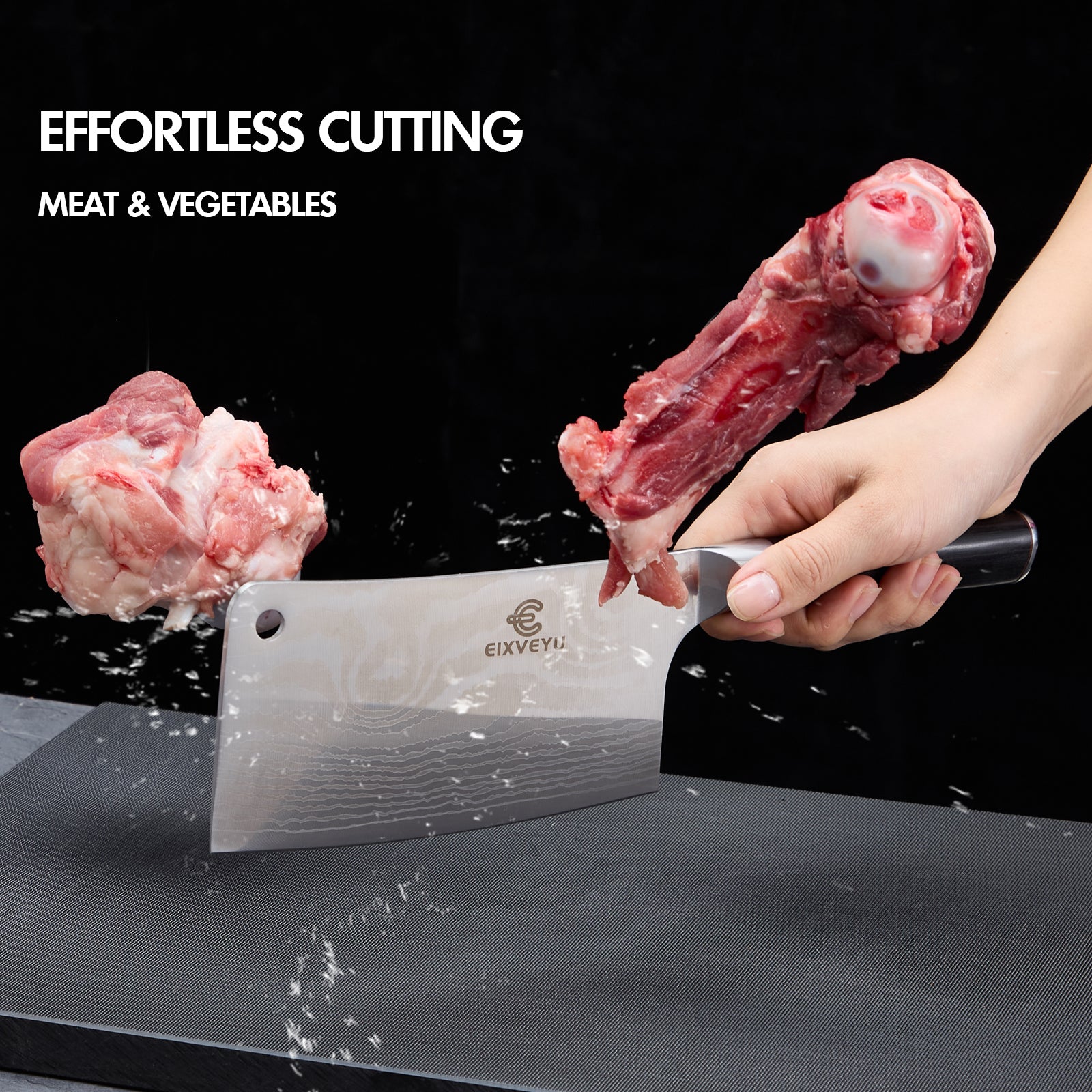 - Multifunktionales Küchenmesser - EIXVEYU Kochmesser ist ein Mehrzweckmesser. Es schneidet, stückelt, schneidet und schneidet Fleisch auch Knochen ab. Es kann die meisten Aufgaben in Ihrer Küche erfüllen, wie zum Beispiel Gemüse, Obst oder Fleisch schneiden. Dieses Kochmesser ist die beste Wahl für professionelle Köche.