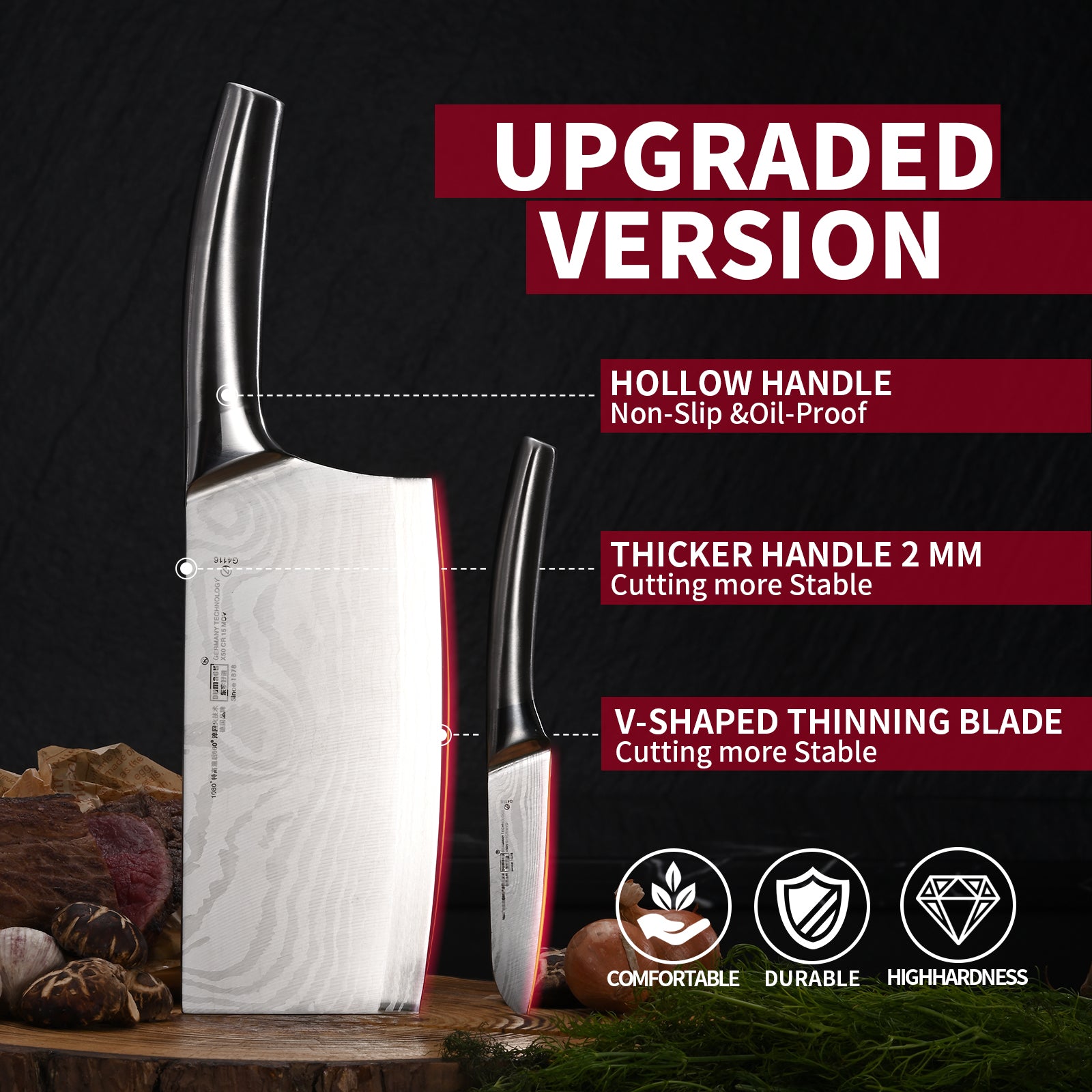 SHI BA ZI ZUO 2 Pieces Knife Set Cleaver Knife and Paring Knife,Stainless Steel Fruit knife Meat Knife with Damascus Pattern,Anti-Slip Hollow Handle