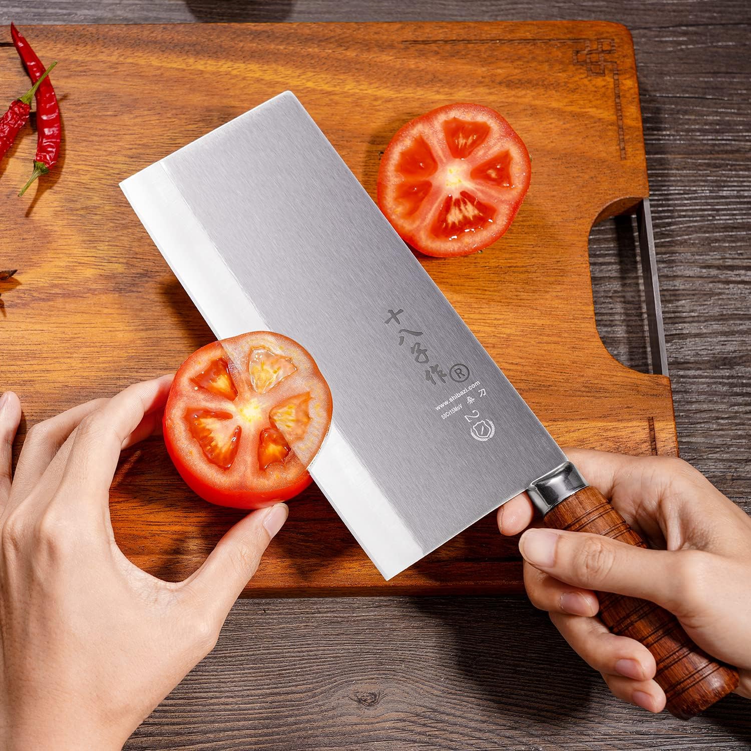 - Versatile Cutlery - It is designed to be a slicing cleaver knife for boneless meat and vegetable. The straight blade is perfect for chop and push cuts. Rectangular blade could be used to smash garlic or ginger and scoop up prep ingredients to pan or wok.