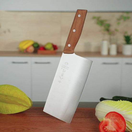 - 【Ergonomic Handle】Ergonomically designed wood handle is anti-slip and anti-freezing and firm to grip avoiding harms to your hand while using the knife.