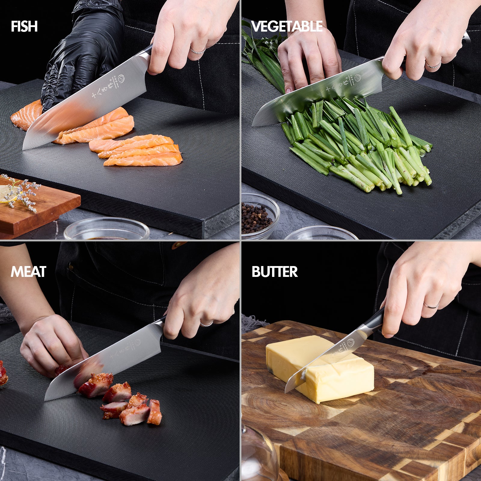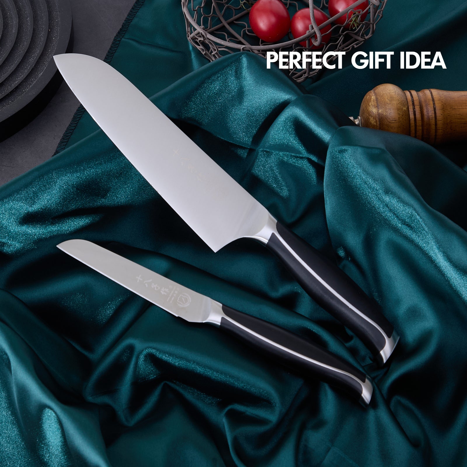 - Professional Knife Set - This kitchen knife set includes 2 razor-sharp knives: a chef knife and a fruit knife.Whether you're slicing meat,vegetables,dicing herbs,or prepping fruits, each kitchen knife of this set is designed to handle a variety of tasks effortlessly. Perfect for both professional chefs and home cooking enthusiasts.