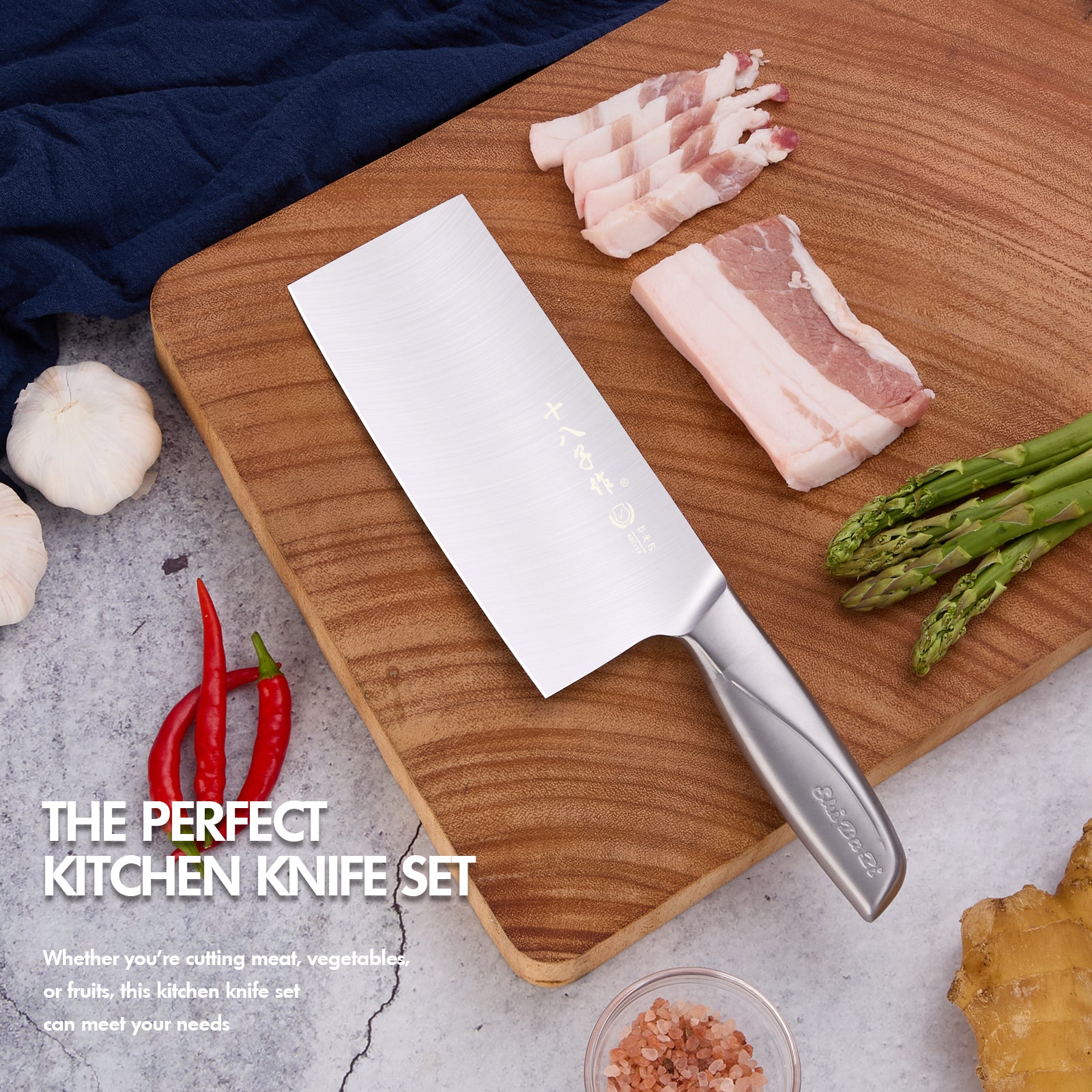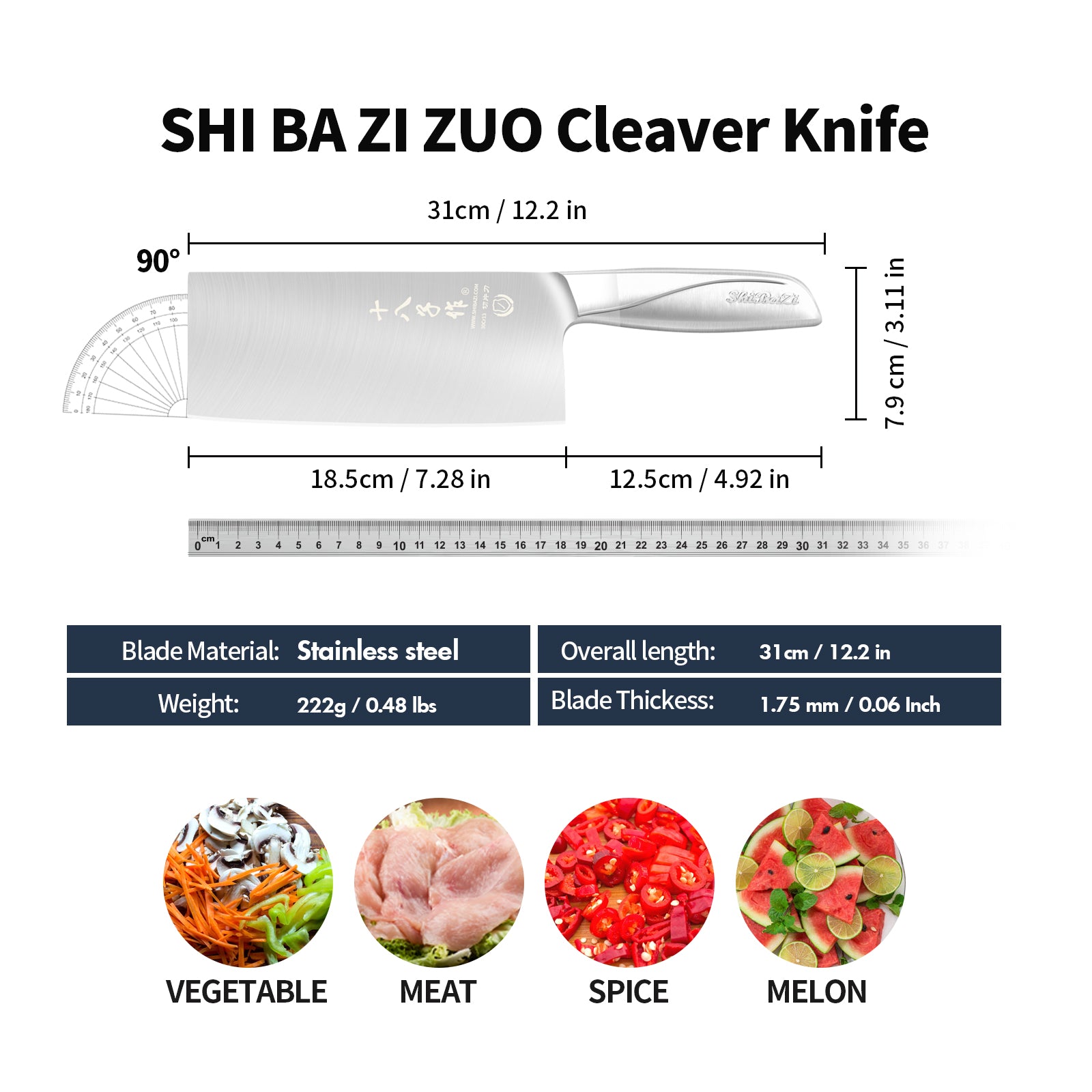 SHI BA ZI ZUO Meat and Vegetable Cleaver Knife,Professional Kitchen Knife with Ergonomic Stainless Steel Handle