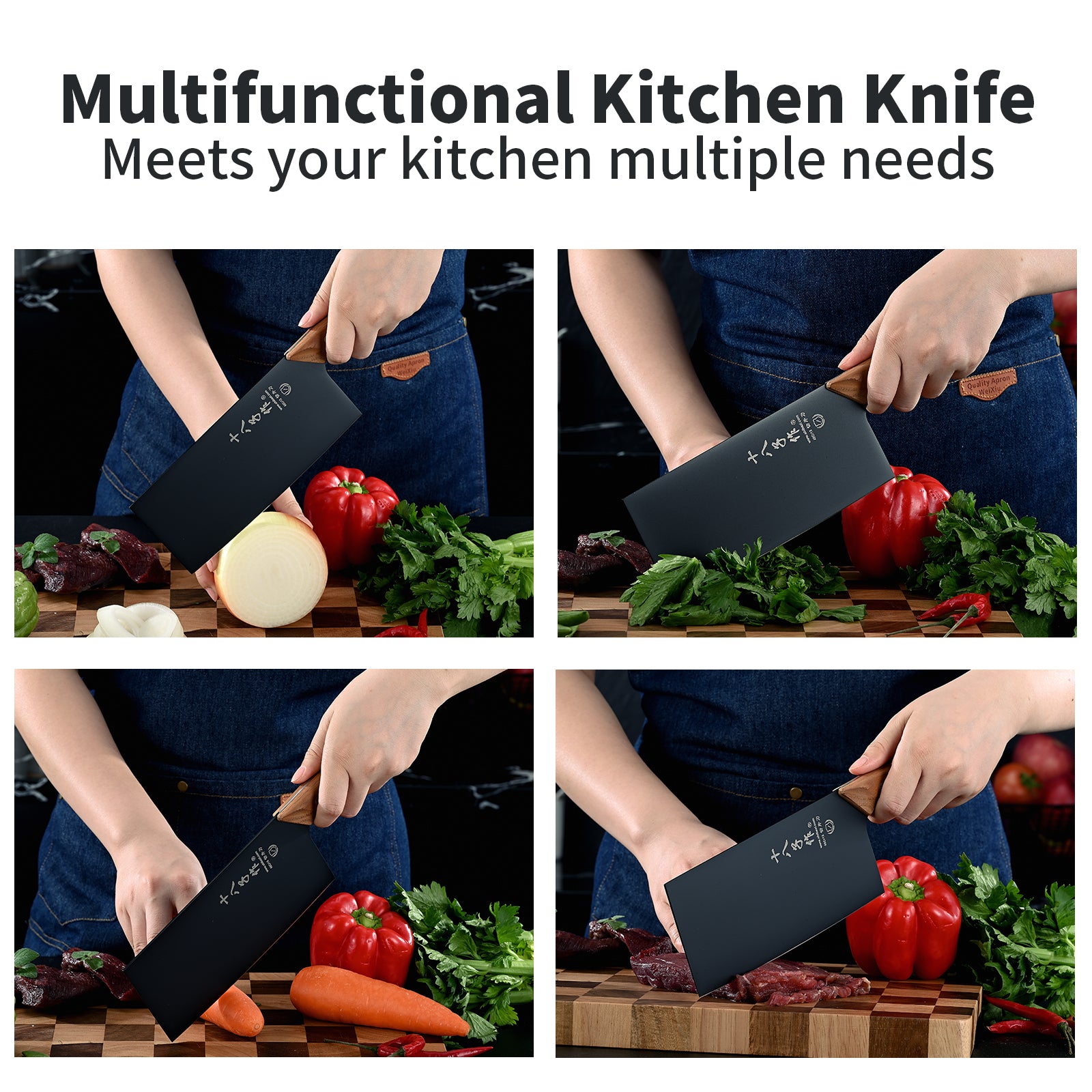 - Full Purpose Cleaver - Ultra sharp blade edge design and well balance of this knife make it perfectly for cutting, slicing, dicing and mincing meat, vegetable. Wide blade is able to smash garlic. It is suitable for homes and restaurants.