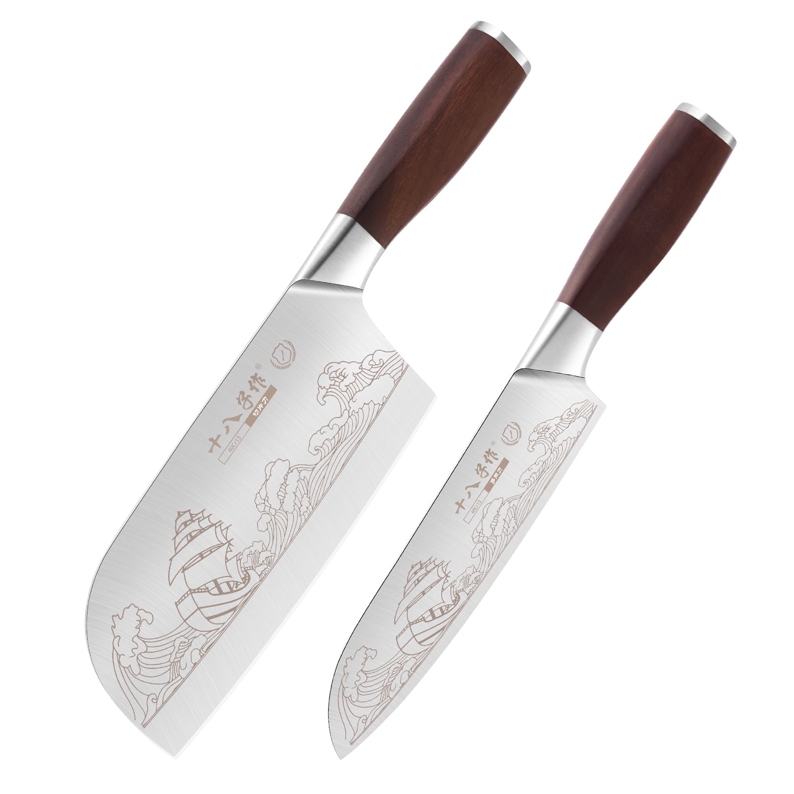 SHI BA ZI ZUO Meat Cleaver Set Chinese Style Patterns 7.09”&6.97" Chef Knife Stainless Steel Professional Kitchen Cleaver And Santoku Knife (Kitchen Knife Set 2 Pcs)