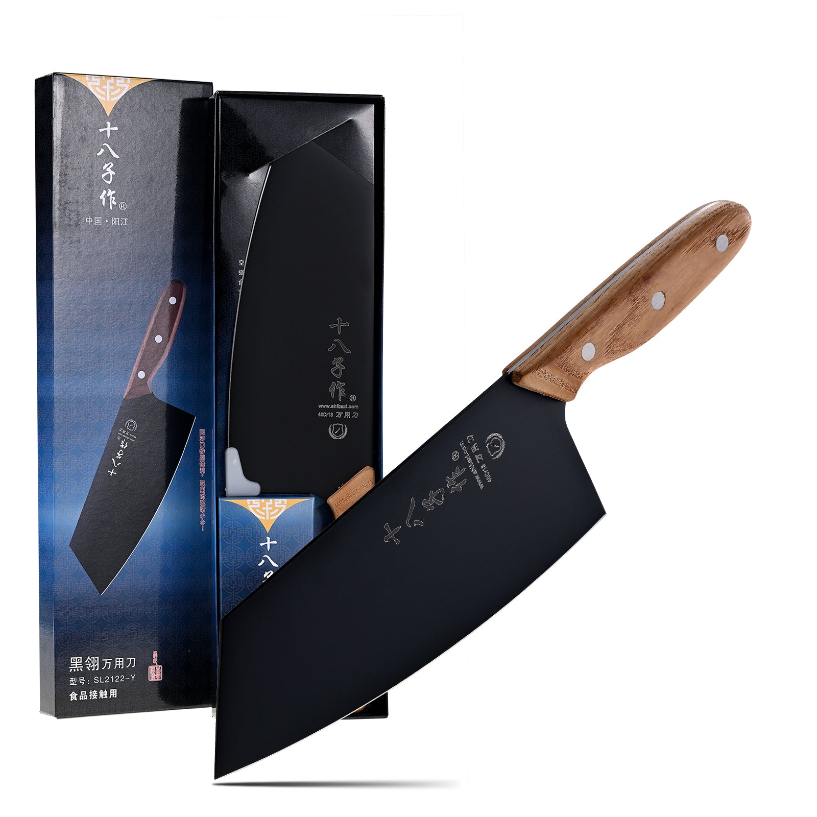 - Blade Craftsmanship - Vacuum heat treatment endows the steel with best mechanical property. Black non-stick coating avoids food sticking on the blade. Full tang blade is more stable and safer.