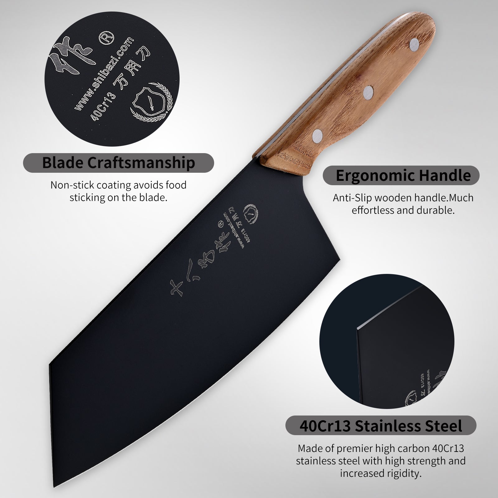 SHI BA ZI ZUO Utility Knife Chinese Vegetable Cleaver for Kitchen Stainless Steel Kitchen Knife with Ergonomic Design Wooden Handle